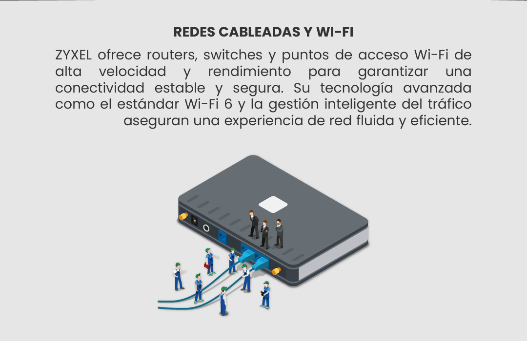 El portafolio de redes de Zyxel ofrece una amplia gama de soluciones para conectar dispositivos y redes. Las soluciones de Zyxel incluyen: